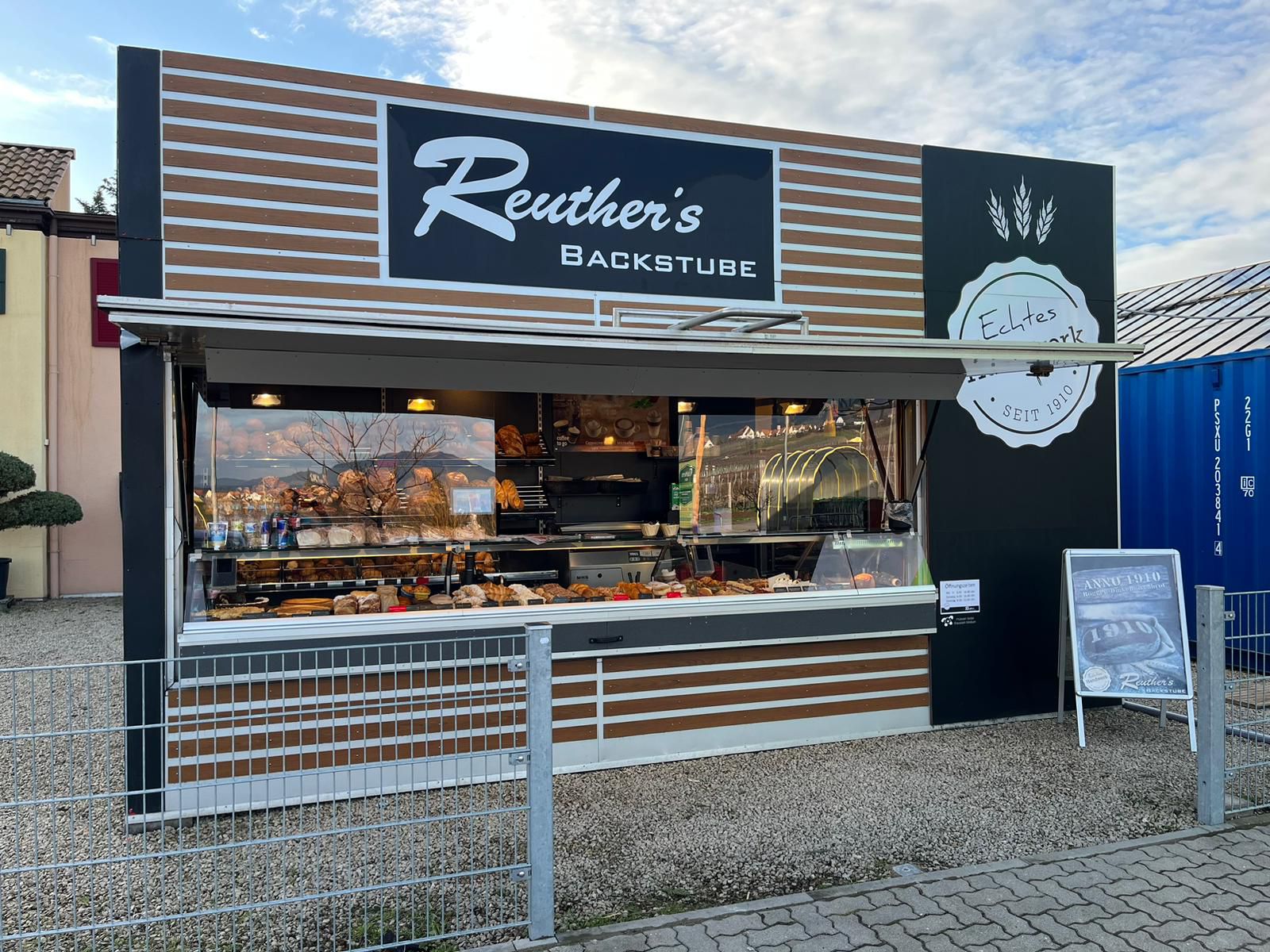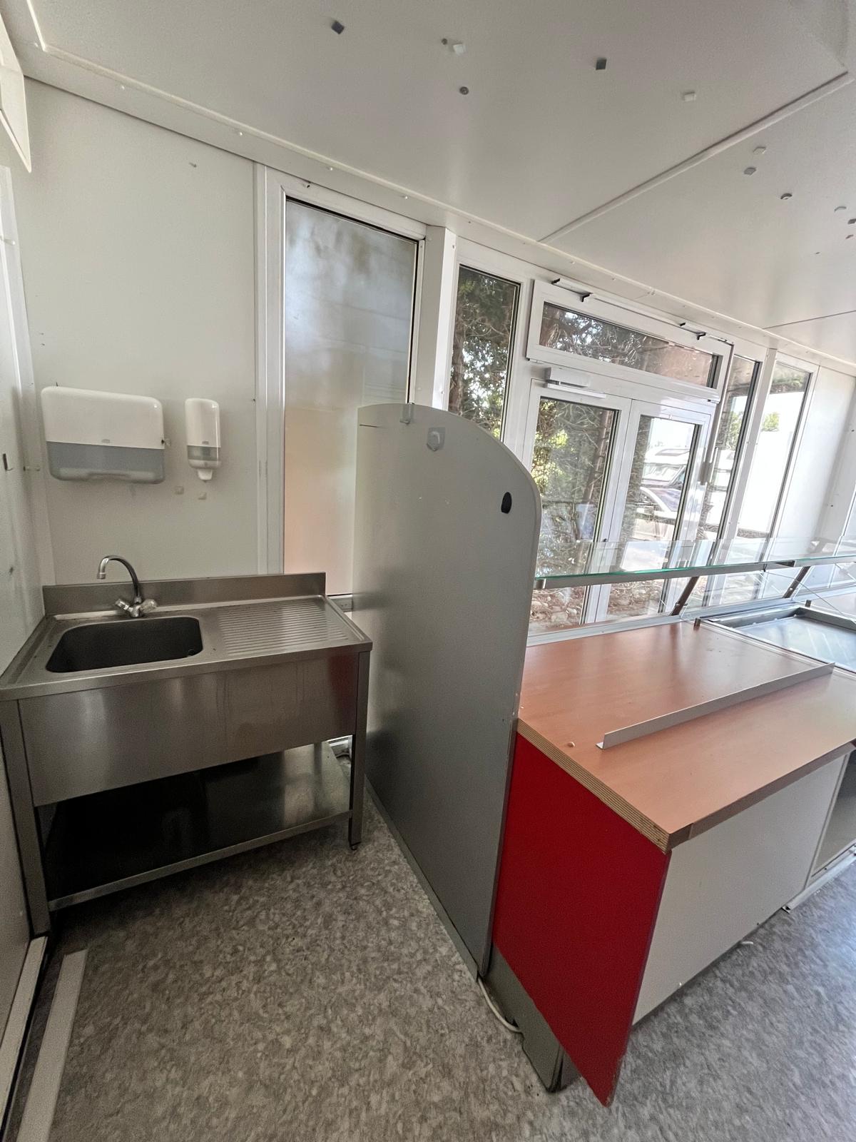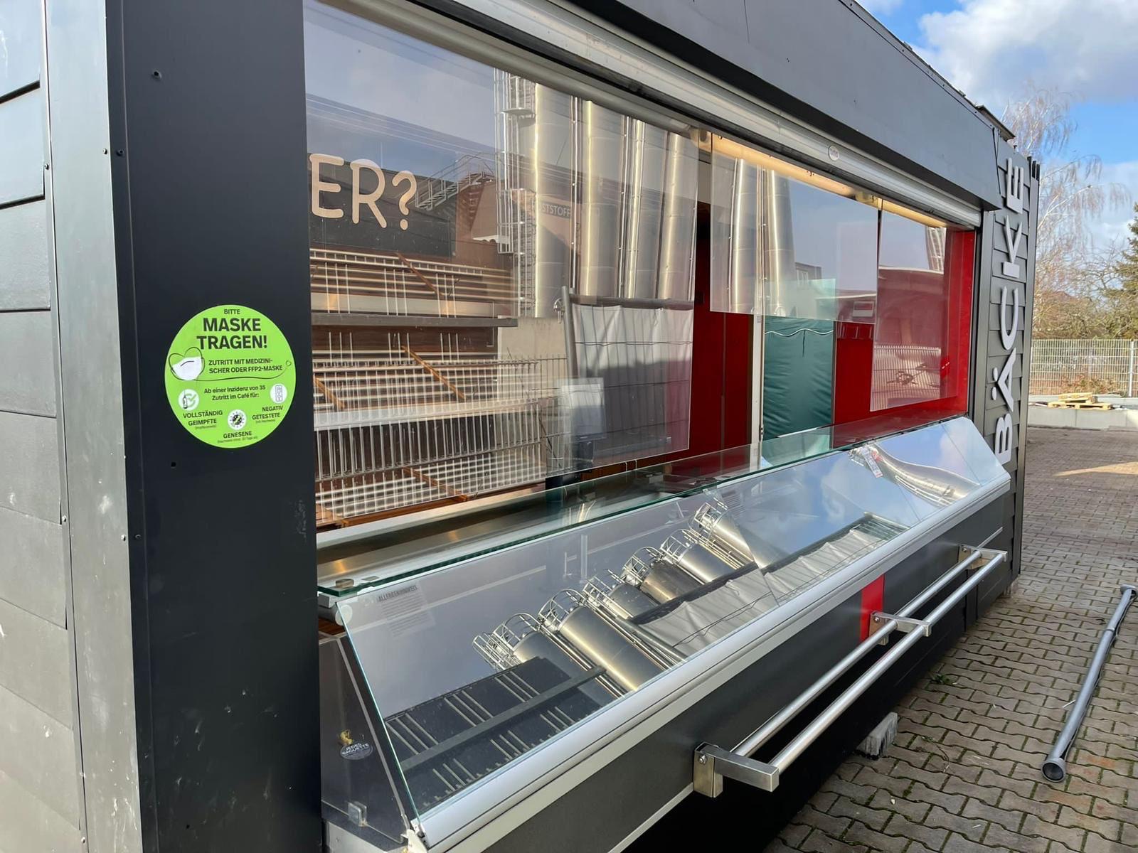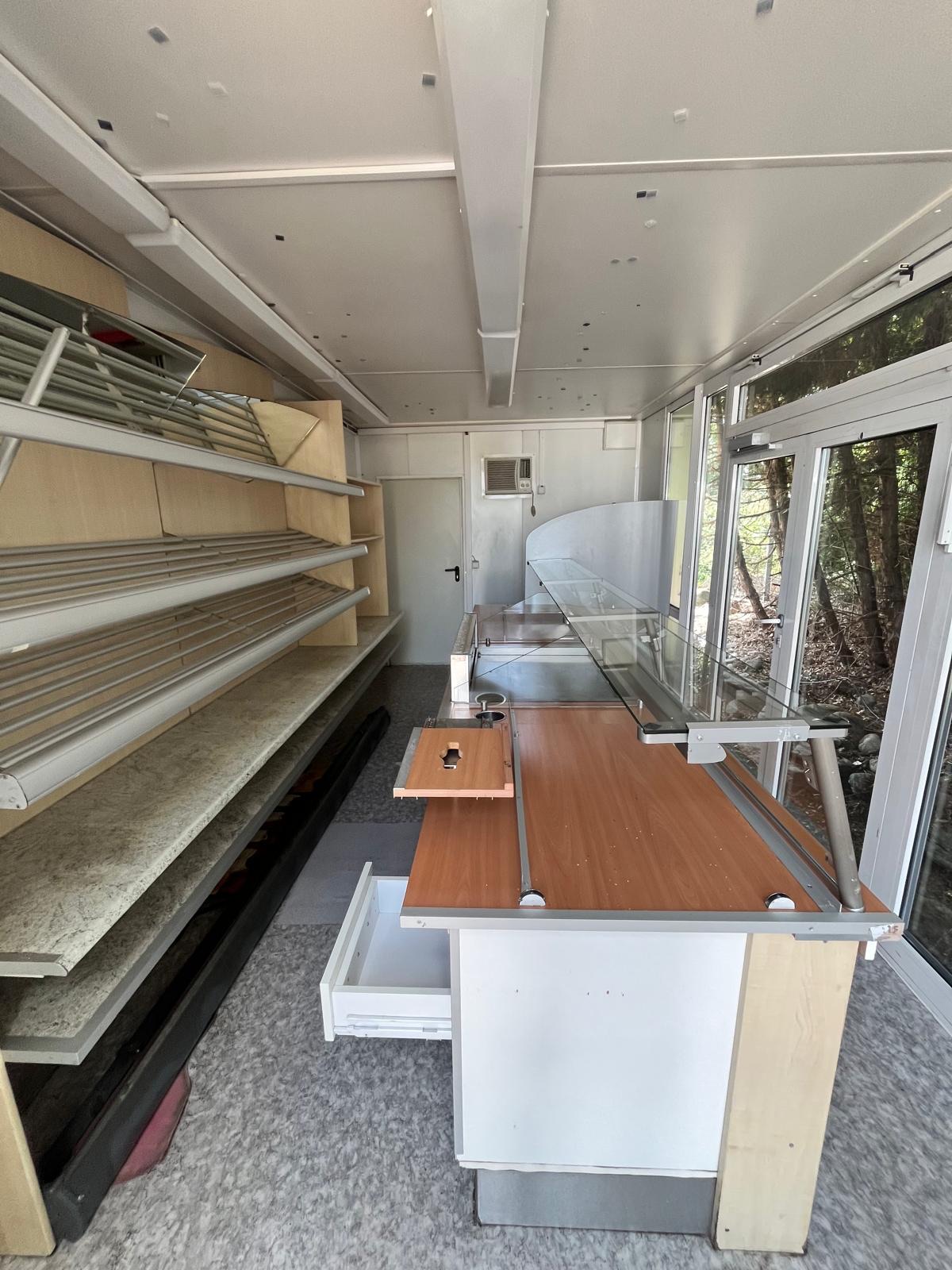 Vollständig ausgestattete Container mit Theke, Kühlung und Brotregalen – einfach aufstellen und loslegen.