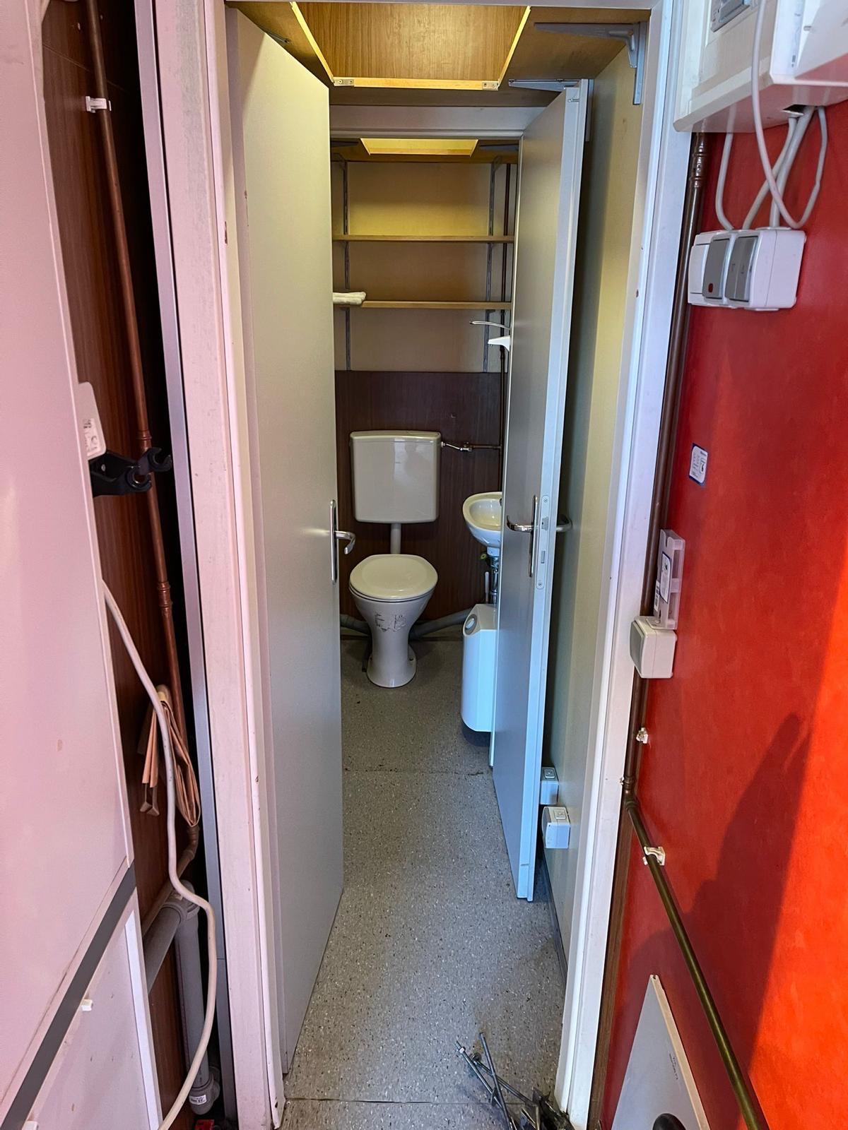 Offener Verkaufscontainer mit integriertem Sanitärbereich und Umkleidemöglichkeit – die Rundumlösung für den ganztägigen Betrieb ohne externe Infrastruktur.
